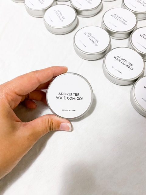 Surpreenda com nosso conjunto de 40 mini velas de 20g, cada uma delicadamente acomodada em uma charmosa latinha de alumínio com adesivo personalizado ao seu gosto! IMPORTANTE: Colocamos “Feito por LAMPI” em todos os adesivos.